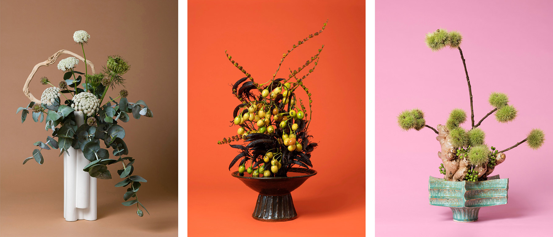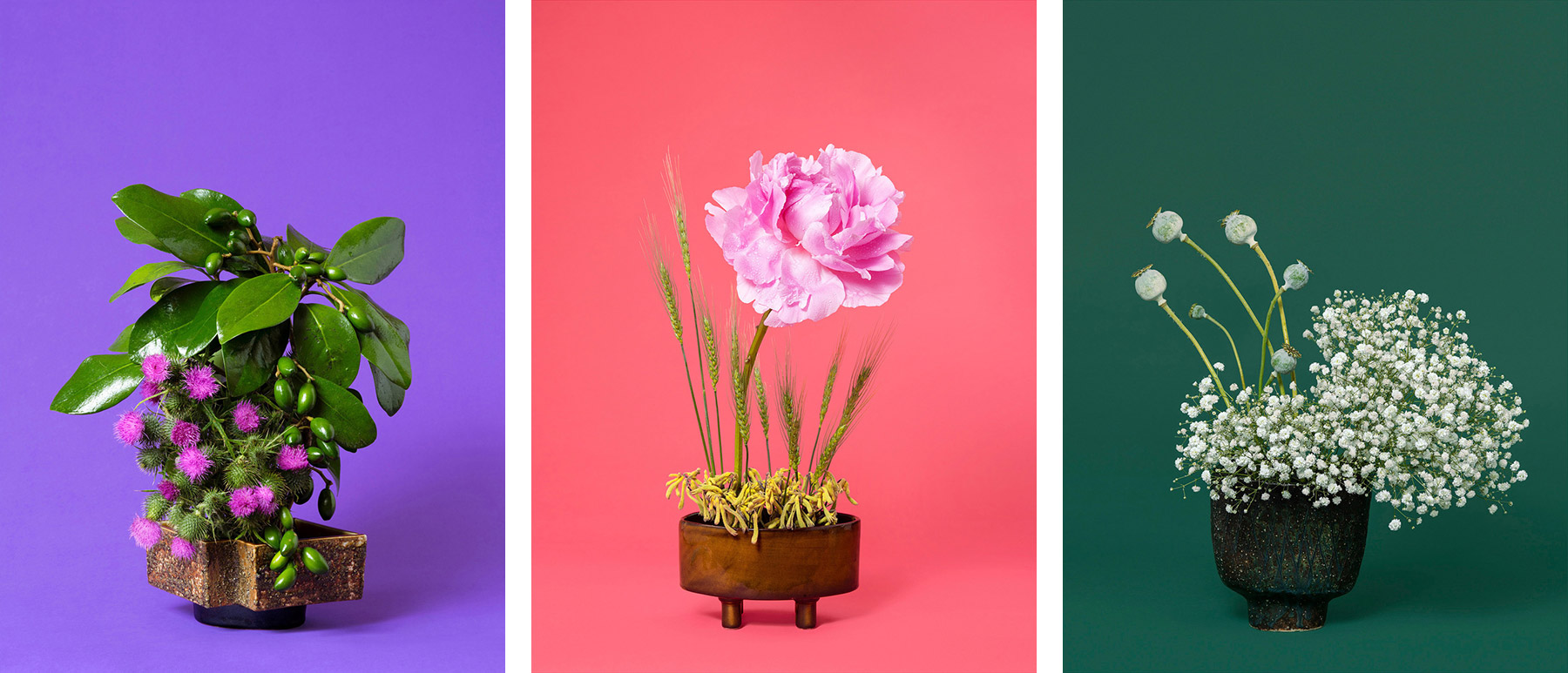 La composición de las imágenes, inspirada por el arte floral japonés del Ikebana, remite a distintos arquetipos de la feminidad. Algunos son arquetipos clásicos como La Madre, encarnada por la ruda, o La Enfermera, por el opio. Otros son de origen mitológico como La Sirena o La Sibila, representadas respectivamente por el ajenjo y la salvia. Y otros son más contemporáneos como La Congresista o La Influencer, que toman ambas la forma de vistosas flores de peonía. Para Shelton, este proyecto celebra nuestra historia de evolución compartida con el reino vegetal a la vez que advierte sobre la pérdida de biodiversidad provocada por la crisis ecológica. Pero es también un alegato a favor de las conquistas históricas de los derechos de las mujeres y de la importancia de transmitir los conocimientos sobre estas plantas a las futuras generaciones.